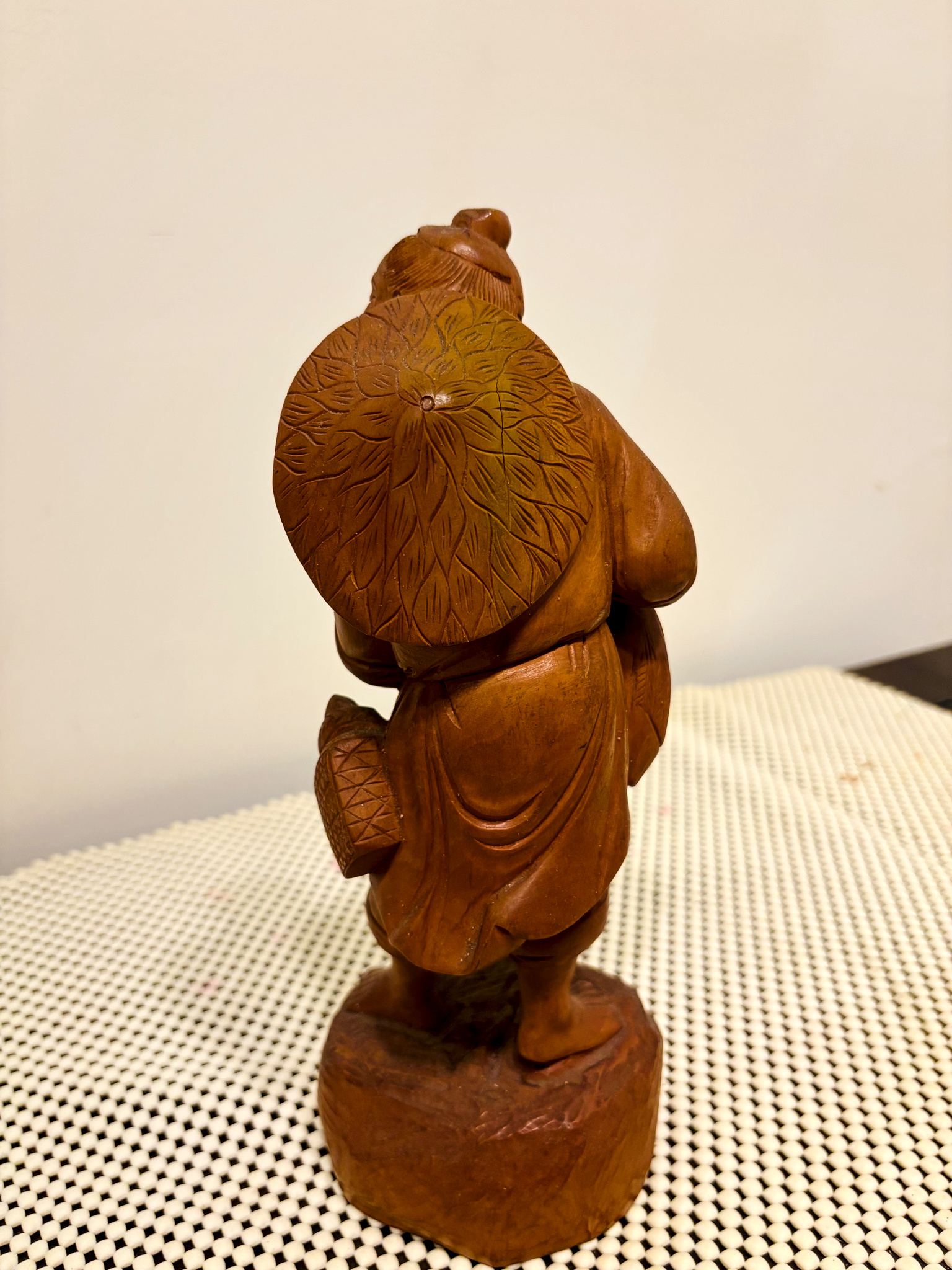 The artisan carved the folds of his robe and expression with delicate skill, evoking a sense of calm and freedom that transcends time.