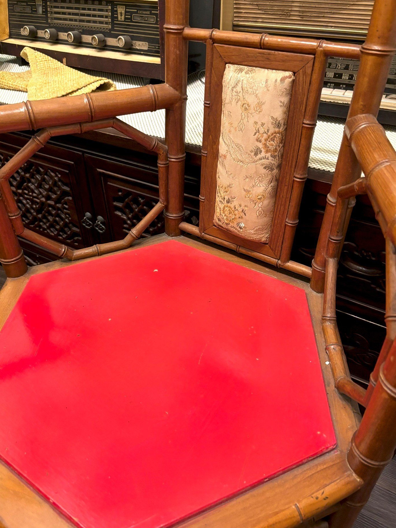 It is said that this tea table was brought to Taiwan along with other belongings during early migration from China. Over the years, the wood has acquired a deep, steady luster, and the surface has developed a gentle patina from long use, further enhancing its historical character.