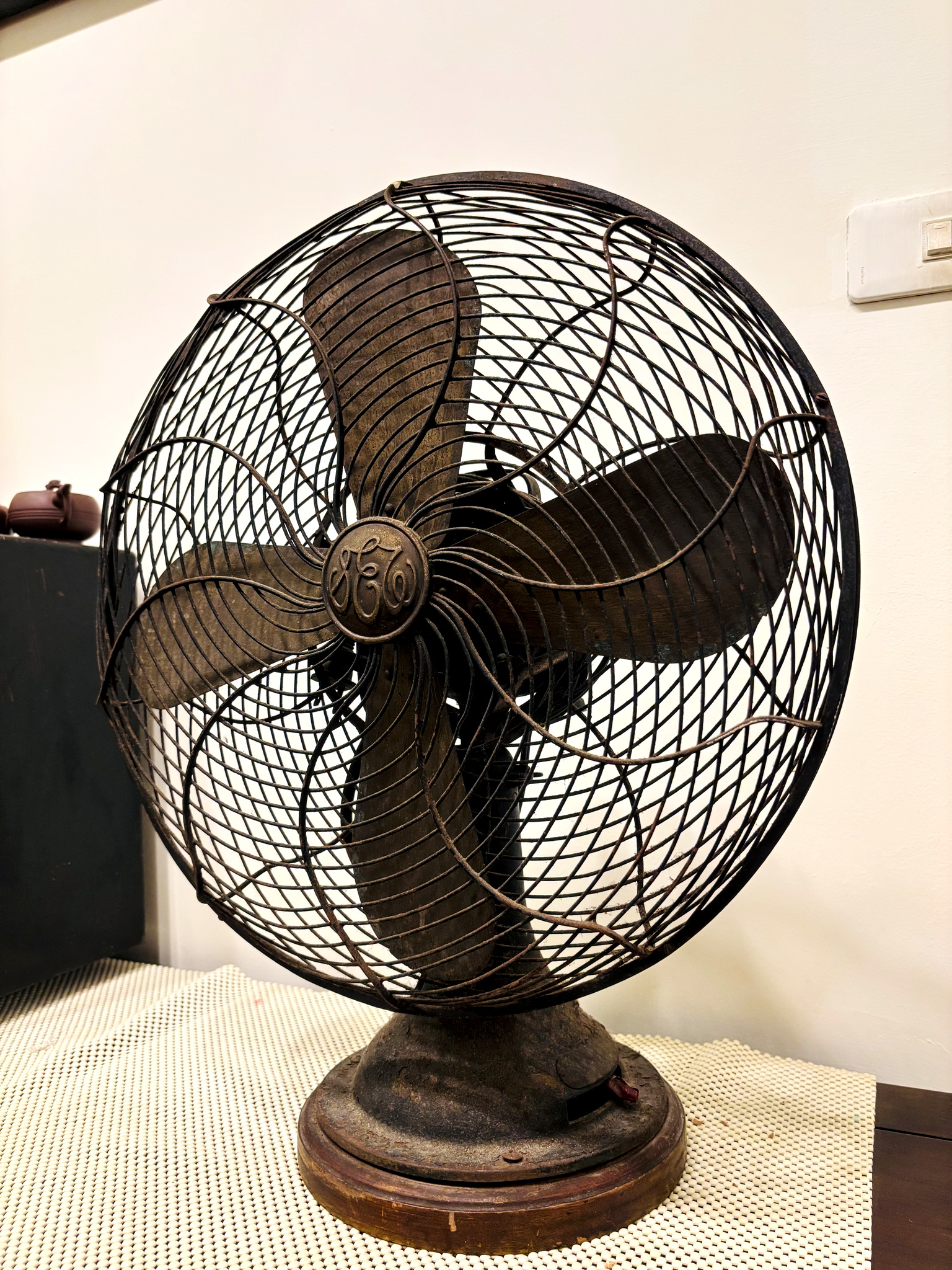 隨著時光流轉,機身鐵銹斑駁,卻更添歲月痕跡,猶如一段凝固的歷史記憶。它不僅是一件日常器物,更是工業文明興起的見證者,承載著電氣時代初期人們對「清涼與舒適」的渴望。